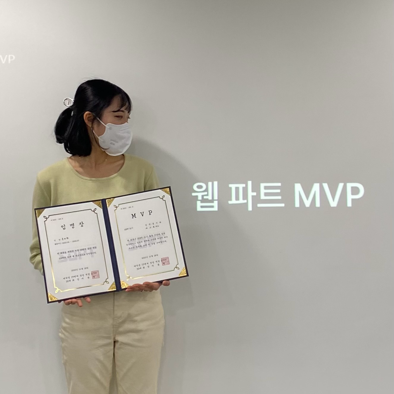 더불어, 2번의 웹파트를 거쳐 MVP라는 정말 소중하고 값진 상도 함께 받게 되었다.