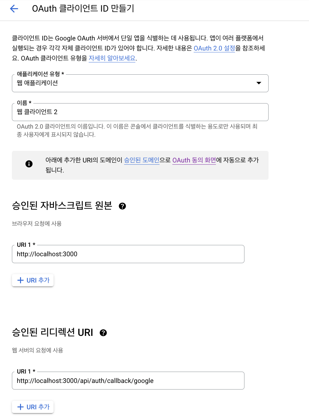 이후에 클라이언트 ID 와 클라이언트 보안 비밀이 생성되므로 이를 .env 파일에 넣어주면 완료 !