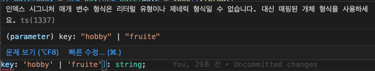 μ΄λ κ² νμ μ μ’νλ Object.keysλ‘ μ κ·Όνμλ keyμ νμ μ΄ string [ ] λ‘ μΆλ‘ λλ κ²μ νμΈν μ μλ€.